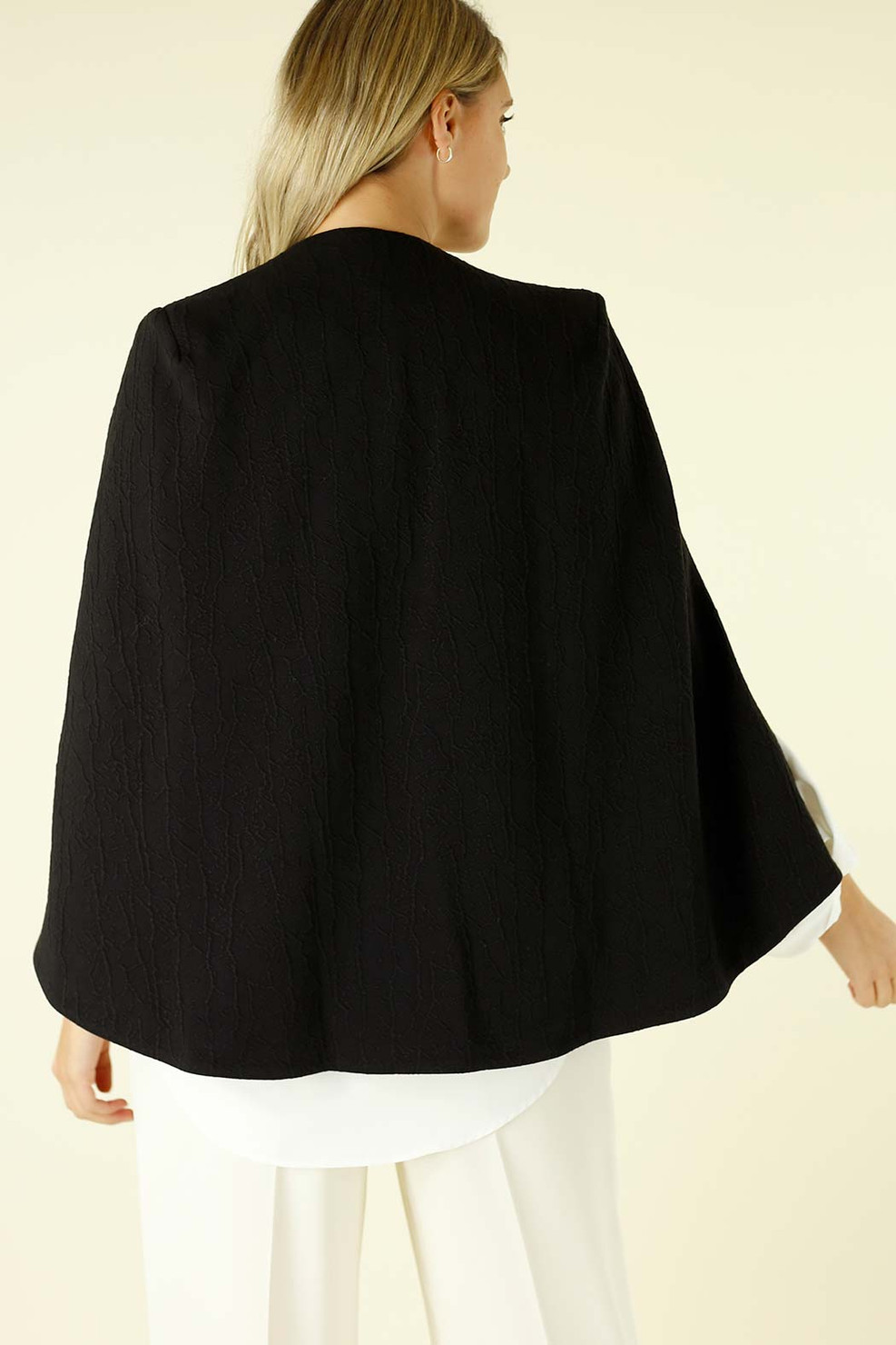 Layer-up with this classic cape! Made in a luxurious textured knit features a gorgeous ripple pattern and enough stretch for ultimate comfort - but with garment details of a classic tailored look. Skimming over your shoulder in sheer elegance, this cape will really be the statement piece of your outfit!