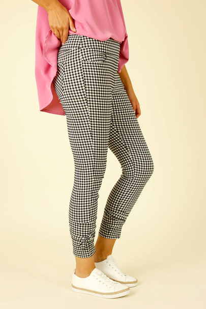 Just like your favourite jean but comfier, these pants will soon be your go-to style secret! In classic black these are cut in a superior stretch bengaline fabric! Smooth your tum with the high-rise waistband and the twin back pockets will sculpt your booty. We LOVE the ankle-tie feature this season! You will feel fabulous every time you slip them on!